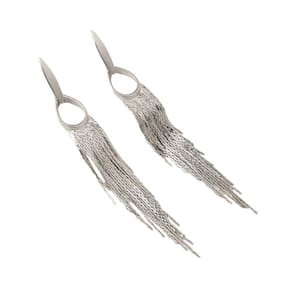 Brincos Femininos Franja Oval Solto Festas Prateado