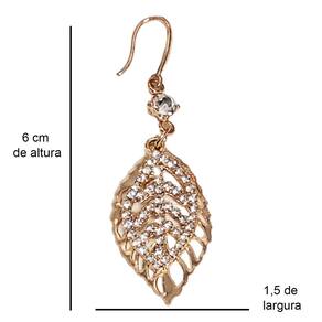 Brincos Femininos Longo Folha Strass Luxo Festas Casamento