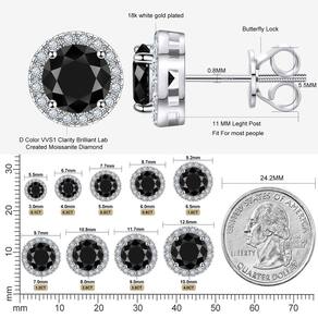 Brincos de halo Moissanite com parafuso traseiro 0,2-8,0ct 3-10 mm banhado a ouro branco 18K prata esterlina 925 laboratório corte redondo brilhante moissanite Halo brincos para mulheres e homens - Detalhes das tachas HALO MOISSANITA PRETAS ?Feito de moissanita de 0,1 ct / 3 mm, um brinco total de 0,2 quilates. Cor D VVS1 clareza brilhante corte redondo moissanite criado em laboratório e prata esterlina 925, feito para durar uma vida inteira! O grau de cor D faz com que pareça claro. Adequado para mulheres e homens. Consulte os detalhes de tamanho cuidadosamente antes de fazer o pedido. - ?Fricção e parafusos traseiros?Os brincos de moissanite têm parafusos traseiros, fáceis de colocar e tirar, não se preocupe com brincos caindo ou perdendo facilmente. Os pinos dos brincos são soldados firmemente e não dobram facilmente. Não sobrecarrega sua orelha, pode ser utilizado em qualquer ocasião, seja evento noturno formal ou casual diário, nunca sai de moda. Além disso, também preparamos um par de alças de silicone. Se você gosta de empurrar ou acidentalmente perder os parafusos, eles podem ser utilizados como reserva. - ?Conjunto de joias de moissanite brilhante?A moissanite brilha mais do que qualquer outra pedra preciosa e você nunca se cansará de ver o brilho de todos os ângulos! Ao contrário dos brincos de zircônia cúbica, cada moissanite tem um certificado GRA e pode passar no testador, o que pode fornecer a você a melhor garantia de qualidade de pedra preciosa. Se você receber brincos que não atendam aos requisitos, informe-nos o mais rápido possível. - ?Melhores brincos para orelhas sensíveis?Os pinos e garras dos brincos são feitos de prata esterlina 925 banhada a ouro branco/amarelo 18K. Todos os metais que usamos são livres de grafite, níquel e hipoalergênicos, adequados para quase todas as orelhas sensíveis. Estes brincos de halo não deixarão sua pele verde, vermelha ou com coceira. - ?Presente de joias de moissanita para mulheres/homens? Nossos brincos de moissanite com parafuso nas costas vêm com uma caixa de presente azul luxuosa, ideal para apresentação e proteção do brinco. Adequado para qualquer ocasião, como presente de aniversário, presente de dia dos namorados, presente de dia das mães, noivado, promessa, Natal, presente de ano novo, fantasia, casamento, aniversário, presentes para homens, mulheres, mãe, sogra, esposa, filha, tia, presentes delicados e delicados para melhor amiga, avó, irmã, adolescentes e assim por diante.