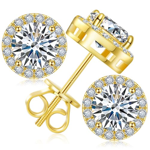 Apresentamos os brincos Moissanite Halo da Gugots, uma joia deslumbrante projetada para homens e mulheres. Estes brincos apresentam 0,8 quilates de claridade VVS1 criada em laboratório, pedras de moissanite de corte redondo brilhantes com grau de cor D, proporcionando clareza e brilho excepcionais. Os brincos são feitos de prata esterlina 925, banhados com ouro amarelo 18K, garantindo durabilidade e um acabamento luxuoso. O design da auréola, com um total de 2 pedras, mede 4,5 mm cada, adiciona um toque elegante aos brincos. A tampa traseira do parafuso garante um ajuste seguro, enquanto a parte traseira de fricção é fornecida como reserva. Estes brincos são perfeitos para orelhas sensíveis, pois não contêm níquel e grafite, e não deixam sua pele verde ou com coceira. Os brincos Moissanite Halo vêm em uma caixa de presente azul luxuosa, o que o torna um presente ideal para qualquer ocasião. Os brincos são adequados para várias ocasiões, incluindo casamentos, noivados, Dia dos Namorados e Natal. Com foco na qualidade e artesanato, estes brincos são uma adição essencial à sua coleção de joias. - ?Brincos de halo de moissanite?0,4 ct / 4,5 mm moissanite um pino, total de 0,8 ct um par de brincos de moissanite. Feito de moissanite de corte redondo brilhante VVS1 e prata esterlina 925, feito para durar uma vida inteira! A moissanite de grau de cor D faz com que pareça mais clara do que outras pedras preciosas. Se você gosta de brincos grandes ou pequenos, temos a maioria dos tamanhos de 3 a 10 mm para escolher, brincos de rosca adequados para mulheres e homens, consulte os detalhes de tamanho cuidadosamente antes de fazer o pedido. - ?Fricção e parafusos traseiros?Os brincos de moissanite têm parafusos traseiros, fáceis de colocar e tirar, não se preocupe com brincos caindo ou perdendo facilmente. Os pinos dos brincos são soldados firmemente e não dobram facilmente. Não sobrecarrega sua orelha, pode ser utilizado em qualquer ocasião, seja evento noturno formal ou casual diário, nunca sai de moda. Além disso, também preparamos um par de alças de silicone. Se você gosta de empurrar ou acidentalmente perder os parafusos, eles podem ser utilizados como reserva. - ?Conjunto de joias de moissanite brilhante?A moissanite brilha mais do que qualquer outra pedra preciosa e você nunca se cansará de ver o brilho de todos os ângulos! Ao contrário dos brincos de zircônia cúbica, cada moissanite tem um certificado GRA e pode passar no testador, o que pode fornecer a você a melhor garantia de qualidade de pedra preciosa. Se você receber brincos que não atendam aos requisitos, informe-nos o mais rápido possível. - ?Melhores brincos para orelhas sensíveis?Os pinos e garras dos brincos são feitos de prata esterlina 925 banhada a ouro branco/amarelo 18K. Todos os metais que usamos são livres de grafite, níquel e hipoalergênicos, adequados para quase todas as orelhas sensíveis. Estes brincos de halo não deixarão sua pele verde, vermelha ou com coceira. - ?Presente de joias de moissanita para mulheres/homens? Nossos brincos de moissanite com parafuso nas costas vêm com uma caixa de presente azul luxuosa, ideal para apresentação e proteção do brinco. Adequado para qualquer ocasião, como presente de aniversário, presente de dia dos namorados, presente de dia das mães, noivado, promessa, Natal, presente de ano novo, fantasia, casamento, aniversário, presentes para homens, mulheres, mãe, sogra, esposa, filha, tia, presentes delicados e delicados para melhor amiga, avó, irmã, adolescentes e assim por diante.