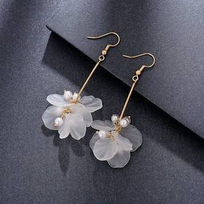 Brincos Merdia Long Dangle Faux Pearl Resin Petals Women