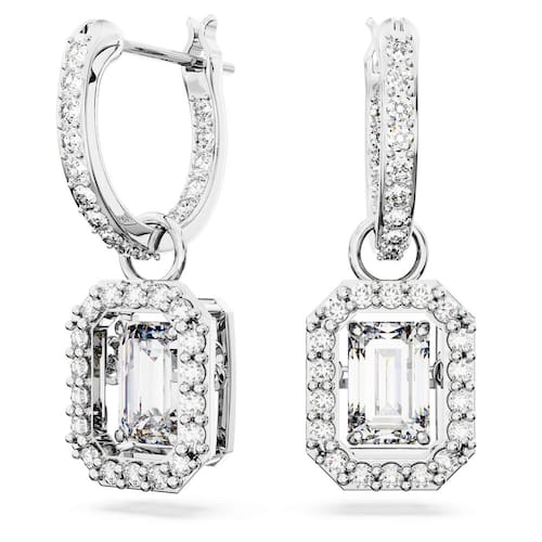 Swarovski Millenia, Cristal, Cristal - Dimensões: 2,3 x 0,8 cm - Impressionantemente atemporal: a forma octógono simboliza o infinito, tornando estes brincos elegantes uma peça significativa, além de serem um item básico do guarda-roupa - Infundido com arte: combinamos uma pedra dançante de cor violeta brilhante com uma moldura de cristais transparentes usando nossa técnica de pavé para dar o efeito de cristais brilhantes sem fim - Versáteis e atraentes: um destaque diário ou um acessório exclusivo, estes brincos Una podem ser utilizados como uma peça de destaque, empilhados ou combinados com outras joias da coleção Una - Projetado para durar: as joias Swarovski mantêm seu brilho quando práticas de cuidados simples são observadas; remova antes de entrar em contato com água, loções ou perfumes e polir com um pano sem fiapos - Itens entregues: (1) brincos Swarovski Una, cristais transparentes e de cor violeta em uma configuração banhada a ródio, completo com caixa de brincos Swarovski