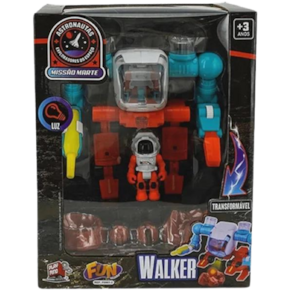 É um veículo-robô explorador, que emite luz, com acessórios.Contém:- 01 Explorador Mars Walker;- 01 Astronauta com Mochila;- 02 Pequenos recipientes;- 02 Pedras que brilham no escuro;- 01 Poço d'água;- 01 Pipeta para coletar água;- 01 Pilha de pedras.Marca: FunCódigo de barras: 7908489400935Modelo: F00813Idade: + 3 anosCertificado: INMETRO ce-bri/innac-01637-11a nbr nm 300/2004 ocp 0046