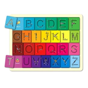 O Brinquedo Infantil Alfabetização Letras Vazadas Madeira é perfeito para ajudar os pequenos na aprendizagem das letras de forma divertida e lúdica. Composto por 26 placas do alfabeto, as crianças devem encaixar o lápis nos recortes de cada letra, seguindo as numerações e o tracejado.