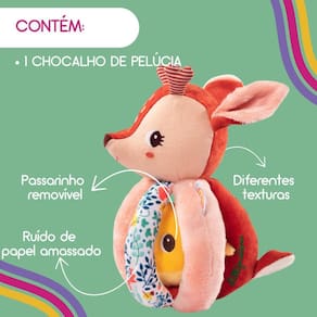 Estimulação sensorial: Os sons suaves do chocalho ajudam a desenvolver a audição e despertam a curiosidade do bebê. Coordenação motora: Ao segurar e sacudir o chocalho, o bebê fortalece os músculos das mãos e melhora a coordenação olho-mão. Conforto e segurança: A textura macia da pelúcia proporciona uma experiência tátil reconfortante e segura para o bebê. Desenvolvimento cognitivo: Estimula a percepção de causa e efeito, incentivando a compreensão de que seus movimentos geram sons.