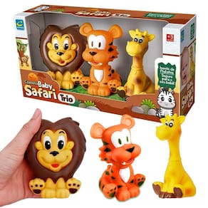 Brinquedo Bebê De Apertar Animais Safari 3 Unids Vinil Macio