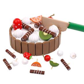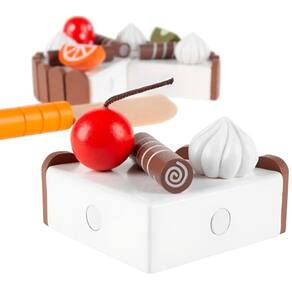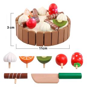 Destaques: Montagem magnética: As fatias se encaixam facilmente com imãs e se separam com a faca de madeira, simulando cortes reais com toque suave Design compacto e temático: tamanho aproximado de 11x3?cm, bem proporcionado para brincadeiras individuais ou com amiguinhos Decoração criativa: inclui diversos elementos decorativos que ajudam a criança a montar diferentes versões do bolo