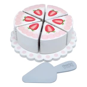 Brinquedo Bolo Fatiado Morango Madeira 6 Pçs Coleção Newart