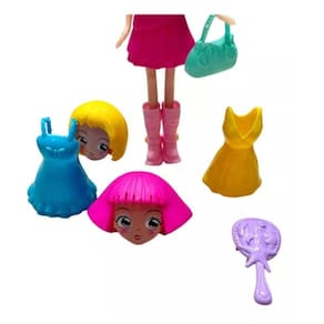 Contém: - 2 vestidos diferente; - 1 par de botas; - 1 bolsa; - 1 pente; - 2 cabelos coloridos.