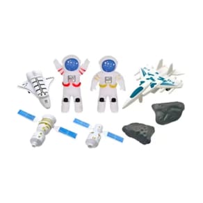 Especificações: -Cor: Branco -Conteúdo: Boneco Astronauta, Acessórios Espaciais diversos (satélite, jato espacial, asteróide e equipamentos) -Material: Plástico -Quantidade de peças: 07 -Tamanho aproximado de produto: 4,5cm de altura x 3cm de largura