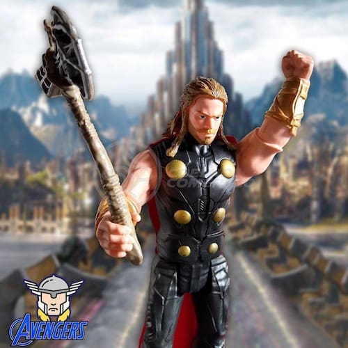 Boneco Action Figure Vingadores Ultimato Thor Marvel Thor é virtualmente um deus de outra realidade, possuindo vastos poderes. Desta maneira, possui uma enorme força e velocidade sobre-humanas. Também é capaz de controlar os elementos da tempestade, gerando trovões, relâmpagos, raios, furacões e geadas. Além de possuir Arma poderosas, como o martelo mágico Mjlnir e o Stormbreaker