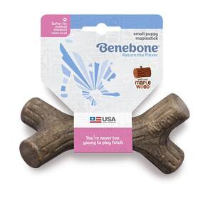 Brinquedo Cães Filhote Benebone Puppy Maplestick Pequeno Não nos parecia justo que os filhotes tivessem que esperar até a fase adulta para desfrutar de um Benebone... Decidimos lançar para eles e, também para cães pequenos, com mordida moderada o Benebone Maplestick, feito com um material um pouco mais macio e, um com o irresistível sabor de madeira de verdade. Filhotes e mesmo adultos, adoram roer madeira. Mas o ideal é que seja a madeira contida no Benebone e não nos pés de sua cadeira na sala de jantar. O peso indicado é apenas uma referência, não pode substituir o julgamento do dono que conhece o seu cão, o tamanho da boca, a força de mastigação e a força do dente. Em caso de dúvida, escolha o tamanho maior por razões de segurança. Tamaho: Pequeno, para cães até 13kg Medidas Aproximadas: 7,5 x 14 cm. Ean: 854111004736
