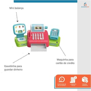 Com o brinquedo Caixa de Supermercado Portátil da Baby Style os pequenos vão se divertir imaginando ter o seu próprio negócio. Uma mini cozinha com 21 acessórios que vira bolsa e pode ir para qualquer lugar. A criança terá um mercadinho completo para brincar com os seus amiguinhos. Escolha entre frutas, verduras e vários outros alimentos e utensílios que vendem no mercado. Passe eles na caixa registradora e pague toda a sua compra com o seu dinheiro ou cartão, todos os acessórios são essenciais para tornar a brincadeira ainda mais real. - Colorida, resistente, durável;- Acabamento todo arredondado que traz extrema segurança para as crianças brincarem;- Encaixes perfeitos. CARACTERÍSTICAS TÉCNICAS: Material: Plástico Medidas aberto: 15cm x 27cm x 14cmIdade recomendada: A partir de 3 anosNecessita de 2 pilhas AA não incluso Contém: 15 peçasPeso: 700gMarca: Baby StyleRef.: 668634Homologação Inmetro: IP-BRI-0531/2022-05