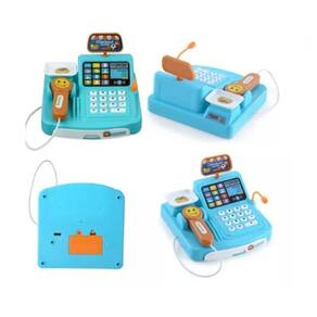Brinquedo caixa registradora mini mercado scanner luz e som