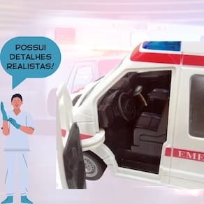 Interatividade Completa: Luzes vibrantes e sons realistas que simulam o funcionamento de uma ambulância de verdade. Detalhes Realistas: Portas que abrem e fecham, permitindo maior interação e brincadeiras criativas. Movimento por Fricção: Sistema que possibilita o carrinho se mover facilmente com um leve impulso.