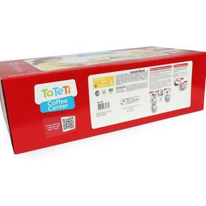 -E tem mais! Para a brincadeira ficar ainda mais divertida, é só abastecer a cafeteira com água e brincar de fazer café expresso.