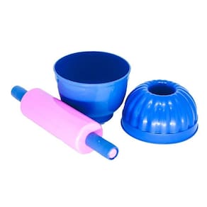 - 2 forma de bolo e 1 rolo de macarrão, de cores rosa com roxo; tamanho do rolo: 18 cm de comprimento x 4 cm de largura tamanho das formas: 8 cm de comprimento x 7 cm de altura