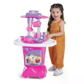A cozinha Top Chef promete estimular e desenvolver o aprendizado dos mini chefs através do faz de conta. Com seu design moderno, ela possui fogão com botão que gira e faz barulho creck-creck, pia com torneira que sai água de verdade e forninho com botão. E, para se divertir fazendo comidinhas ela acompanha vários acessórios, como pratos, talheres, xícaras, frigideira, panela e leiteira com tampa. E que tal levar a brincadeira para onde quiser?