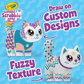 Brinquedo Crayola Scribble Scrubbie Jumbo Cat de 6 polegadas com pincel e marcadores