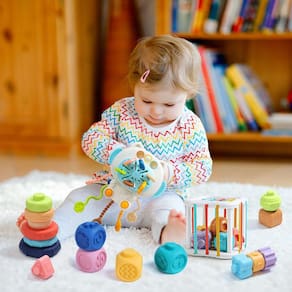 - Material de segurança: os brinquedos infantis são feitos de material de qualidade premium, não tóxico e livre de BPA, garantindo que todo o brinquedo sensorial seja seguro para seu bebê. Esses brinquedos são mastigáveis, empilháveis e espremíveis, adequados para qualquer atividade.