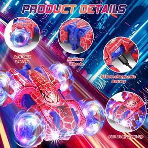 Este carro RC drift de aranha possui luz LED - Carro RC com 2 modos de controle: este carro de acrobacias RC de 4 rodas está equipado com luzes LED de corpo inteiro e faróis legais. Pode ir para todas as direções e virar, pode facilmente completar acrobacias de direção frente e verso e rotações de 360° - Controle manual com sensor de gestos: o controle indutivo e a combinação de botões fazem com que seu controle pareça um peixe na água, RPG imersivo e excelente experiência de controle. Seu design flexível e resistente torna o carro antiqueda e durável - Pneus resistentes ao desgaste: o carro de controle remoto tem um motor potente e 4 pneus resistentes ao desgaste com boa absorção de choque e aderência. Pode se adaptar facilmente a uma variedade de terrenos, incluindo ambientes internos e externos, como tapetes, gramado, estradas de cascalho, etc - Recarregável antiinterferência de 2,4 GHZ e Tipo-C recarregável: os carrinhos de brinquedo aranha suportam controle de longa distância sem interferir um no outro, e podem ser carregados diretamente sem desmontar ou trocar a bateria, é um divertido carro RC para meninos 4-6, 6-8, 8-12 anos de idade - Fácil de controlar, divertido para todos: este carro de corrida spider drift pode promover a comunicação entre crianças. Bom presente para aniversários, festas com tema de aranha, Dia das Crianças, Natal. É um brinquedo de aranha popular para meninos de 4-6 5-7 8-13 anos - *O controle remoto usa 2 pilhas AA de 1,5 V (não incluídas) - *O controle remoto manual usa 2 pilhas AAA (não incluídas)