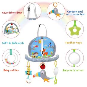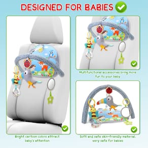 ?Brinquedo de assento de carro voltado para trás?Nosso brinquedo de assento de carro pode ajudá-lo a distrair seu bebê durante viagens longas. Mantenha seu bebê ocupado e dirija com mais segurança. ?Brinquedo musical para assento de carro?Em comparação com outros brinquedos de assento de carro, nosso produto tem a vantagem: ? Caixa de música embutida na parte de trás das teclas do piano de pedal, músicas diferentes permanecem atraentes para o bebê. ? Três brinquedos macios podem ser substituídos à vontade, e o bebê está cansado de brincar com outros brinquedos e pode ser substituído. ?Promove habilidades sensoriais e motoras finas?Os brinquedos infantis têm um espelho seguro para bebês e 3 peluches suspensos que podem ser chutados e jogáveis que rangem quando apertados. Brincar e agarrar brinquedos macios promove o desenvolvimento das habilidades sensoriais e motoras finas do seu bebê. ?Tecido seguro e macio e os melhores brinquedos para presente?O brinquedo para bebês é feito de tecidos coloridos, macios e amigáveis à pele. Os bebês podem brincar sem se preocupar com o contato com os brinquedos para machucá-los. O brinquedo de viagem para bebês é um presente perfeito para bebês de 6 a 12 a 18 meses ou mais, meninos e meninas. Ele proporcionará viagens de carro seguras e divertidas para famílias com bebês. ?Fácil instalação e ajuste?O brinquedo de assento de carro com tiras de fecho aderente e fivela ajustável, que facilita o ajuste do comprimento e do ângulo para que o bebê possa realizar todas as atividades divertidas?brinquedos para carros de bebê?Brinquedos ajustáveis e bonecas interessantes atraem o bebê, melhoram a capacidade de atividade do bebê por meio de brincadeiras, encantam o humor do bebê quando você dirige e tornam o entediante tempo de condução mais interessante. ?brinquedos de carro para bebês de 6 a 12 meses?Você ainda está escolhendo os brinquedos de viagem certos para seu bebê? Este brinquedo pode ser ajustado em vários lugares para que seu bebê possa beliscar, tocar e chutar facilmente o som interessante que acompanha este brinquedo, adequado para bebês em diferentes fases da vida. ?brinquedo de assento de carro infantil?Há três lindas bonecas penduradas no brinquedo de assento de carro, um elefante, um sol e um leão. Três brinquedos emitirão sons interessantes para manter o bebê ocupado. ?Presente perfeito?Este item é embalado em caixas de papel requintadas, o que é um presente perfeito para bebês. É o melhor presente de chá de bebê para mamãe ou papai. Ele proporcionará viagens de carro seguras, divertidas e sem desconforto para famílias com bebês. ?Fácil instalação e ajuste?Os brinquedos para carros de bebê voltados para trás são fixados sob o encosto de cabeça do banco traseiro do carro por meio de duas fivelas de plástico e duas hastes de ajuste. O comprimento e o ângulo são ajustáveis para facilitar a brincadeira do bebê. INSTALE SEUS BRINQUEDOS DE CARRO DE BEBÊ COM FACILIDADE: este centro de atividades para carros de bebê será fixado instantaneamente ao encosto de cabeça do assento traseiro com a fivela, o que manterá seu brinquedo de atividade para bebês firmemente fixado até chegar ao seu destino, e os três brinquedos e o tapete são removidos facilmente, a superfície é lisa, nosso brinquedo de brinquedo para bebês pode ser facilmente pendurado no carro e dobrado quando está levado ao ar livre ou até mesmo para viajar. PLAYGROUND DO DESENVOLVIMENTO INICIAL DO BEBÊ: O bebê gosta de atividades contínuas e enquanto viajar de carro pode ser irritante ou difícil para seu bebê, e proporcionar atividades suaves e divertidas pode torná-lo interessante, alegre e fácil para ele. O brinquedo voltado para trás serve para esse propósito, incluindo 3 chocalhos pendurados coloridos que podem ser utilizados para deitar, sentar, ficar de barriga para baixo, chutar, brincar e levar. PROMOVE HABILIDADES MOTORAS SENSORIAIS E FINAS: esses brinquedos coloridos pendurados atraem a atenção de seu filho e estimular seus sentidos, também pode exercitar a coordenação dos membros, promover o desenvolvimento das costas do bebê e o desenvolvimento de movimentos finos das mãos, reconhecimento de cores. Ajude a desenvolver a função cognitiva de seu bebê com nossos brinquedos coloridos e estimulantes para crianças. MATERIAIS TRANQUILOS E DESIGN EXCLUSIVO: os brinquedos macios para cadeirinhas de bebê são feitos de material seguro e adequado à pele, veludo de pele de pêssego de dupla face, respirável e resistente ao desgaste, a tecnologia de costura justa que não é fácil de rasgar; você pode ajustar o ângulo da ponte em arco de acordo com seu bebê como quiser, e seu bebê se divertirá. A parte inferior do brinquedo precisa estar localizada entre a cadeira e a cadeirinha de carro OFERECEM UM PRESENTE INESQUECÍVEL DE CHÁ DE BEBÊ: o brinquedo de viagem para bebês é oferecido em cores vibrantes e unissex, feito de tecidos macios e amigáveis à pele. Os bebês podem brincar sem se preocupar com o contato com brinquedos para machucá-los. É o presente perfeito para bebês de 6 a 12 meses ou mais, meninos e meninas, sobrinhos, sobrinhas e netos. Proporcionará viagens de carro seguras, divertidas e sem desconforto para famílias com bebês. O AIPINQI brinquedos para cadeirinhas de bebê são excelentes ideias de presente para qualquer ocasião -?Brinquedos para carros de bebê?Brinquedos ajustáveis para cadeirinhas de bebê e bonecas divertidas atraem bebês e melhore sua mobilidade por meio do jogo. Torne o tempo entediante de dirigir mais divertido entretendo seu bebê enquanto você dirige -?Baby Busy Design?Os brinquedos de assento de carro FancyWhoop têm estampas de animais fofos de desenhos animados, além de brinquedos de chocalho, brinquedos de mordedor, brinquedos para espelhos para bebês, pingentes macios de pequenos animais e uma caixa de música intern