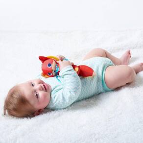 Características principais: Estimula os sentidos da criança; É macio; Possui argola que pode ser usado como mordedor;