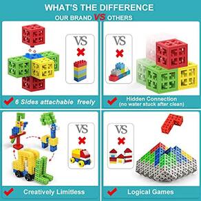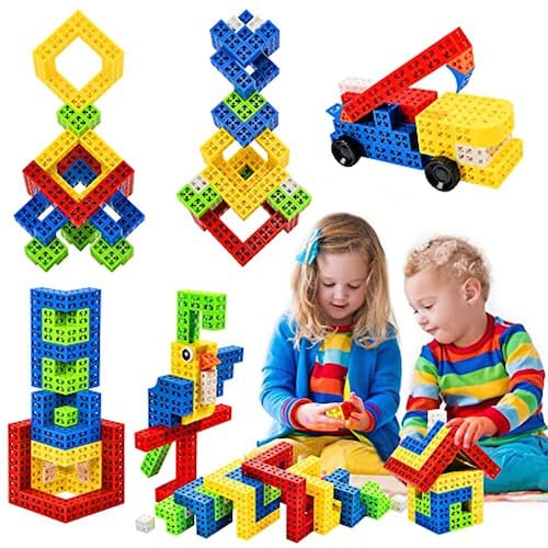 Brinquedo de bloco de empilhamento de construção, Bloco de construção de pilha Brinquedo sensorial para crianças STEM Conjuntos Educacionais Aprendizagem e Desenvolvimento Brinquedos Cubos, DIY Construir variações com tijolos engraçados quebra-cabeça para a idade 3 e acima, 150pcs