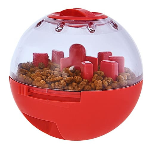 Brinquedo interativo em formato de bola para alimentar o seu animal de estimação. Brinquedo de fácil montagem com abertura para petiscos;Retarda a alimentação para evitar excessos e ajudar na digestão; Possui trava para regular a vazão de guloseimas; Garante a diversão dos familiares e aumenta o QI de seu pet; Seu pet pode comer a comida abrindo a tampa com a boca ou com a pata;Reduz o tensão e ansiedade na hora de comer. Modo de Usar: Gire a tampa superior para abri-la, adicione guloseimas e gire novamente para fechar. Limite o tamanho do furo de vazamento na trava lateral. Pronto, pode deixar seu pet brincar a vontade, ele vai divertir e ao mesmo tempo estimular o aumento de seu QI.