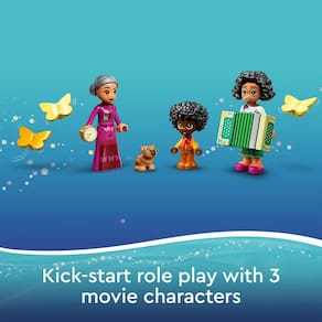 Brinquedo de construção LEGO Disney The Madrigal House 43202, casa de bonecas com bonecos de miniboneca, presentes Disney's Encanto para crianças, meninas e meninos de mais de 6 anos - Este brinquedo de construção LEGO Disney de 587 peças apresenta a casa de 3 andares de Mirabel, com cata-vento giratório, cama giratória e persianas ondulantes - O conjunto de casa de bonecas LEGO Disney's The Madrigal inclui vários quartos, funções diferentes do filme e acessórios para inspire brincadeiras - As crianças podem visitar a cozinha, fazer um lanche saboroso, depois sair, acenar para a casa e ver se ela volta. - Vem com 2 minibonecos LEGO Disney's Abuela e Mirabel e um boneco de microboneco Antonio, além de bonecos LEGO de capivara e borboleta - Os acessórios incluem acordeão, gramofone e guarda-chuva e uma folha de adesivos para decorar e personalizar a casa - Com bonecos LEGO Disney's Encanto A casa é perfeita para brincadeiras prolongadas e fica ótima em exibição; também é um ótimo presente para crianças