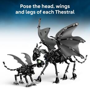 - BONECOS DE AÇÃO DOBRÁVEIS — Ambas as criaturas apresentam cabeças, pernas e asas articuladas, e as crianças podem posar as asas de tecido do Thestral adulto para brincar ou exibir