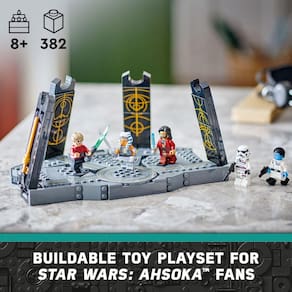 Brinquedo de construção LEGO Star Wars Ahsoka Tano's Duel on Peridea para crianças, brinquedo colecionável com 5 minifiguras de Star Wars, incluindo Grand Admiral Thrawn e Ahsoka, presente divertido para meninos e meninas de 8 anos, 75385 - Brinquedo de construção LEGO Star Wars para crianças — Recrie o duelo de Ahsoka Tano em Peridea contra o exército do Grande Almirante Thrawn do final da primeira temporada de Star Wars: Ahsoka ale - 5 minifiguras LEGO Star Wars — Ahsoka Tano, Grand Admiral Thrawn, Morgan Elsbeth, Ezra Bridger e um Night Trooper — Brinquedo de batalha montável — A plataforma construída em tijolos tem 3 toca-discos embutidos para batalhas giratórias de minifiguras LEGO e uma função para recriar o salto de Ezra da plataforma - Acessórios divertidos - Este brinquedo colecionável inclui 2 sabres de luz brancos para Ahsoka Tano, um blaster para o Almirante Thrawn, a Lâmina de Talzin para Morgan Elsbeth, um sabre de luz azul para Ezra Bridger e o lançador do Night Trooper - Presente divertido para crianças de 8 anos — Dê este tijolo LEGO conjunto de brinquedos de aventura construído como presente de Natal ou aniversário para meninos, meninas ou qualquer jovem fã de Star Wars: Ahsoka - Brinquedos de construção colecionáveis para todas as idades — os conjuntos LEGO Star Wars permitem que crianças e fãs adultos de Star Wars para recriar cenas clássicas, criar suas próprias aventuras ou simplesmente exibir os modelos montáveis - Construa, jogue e crie uma tela de Star Wars: Ahsoka - A plataforma deste conjunto de 382 peças mede mais de 4 pol. (11 cm) de altura, 9 pol. (23 cm) de largura e 5,5 pol. (14 cm) de profundidade