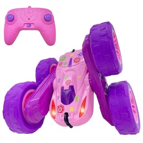 Threeking Presentes de brinquedo de carros de acrobacias RC para meninos e meninas a partir de 6 anos - Carro de acrobacia RC do sonho da menina: o escudo rosa-roxo exclusivo aliviado por flores coloridas faz com que ele se destaque dos carros comuns de controle remoto. Realmente um carro de controle remoto dos sonhos especialmente para meninas. O carro pode cair no lugar a 360 graus e dirigir em dupla face. Oferecerá uma experiência emocionante e versátil para meninas. Bons presentes para crianças a partir de 6 anos. - Vamos brincar juntos: antiinterferência, longa distância e controles fáceis. Vários conjuntos de carrinhos de brinquedo podem competir juntos, e esses carros seguirão seu próprio caminho sem interferir um no outro. Quando o carro encontrar um pequeno obstáculo, use o controle remoto para fazer o carro rolar ou a condução frente e verso pode passar facilmente por obstáculos, esta função também pode reverter repentinamente em movimento rápido para fazer o carro de brinquedo se transformar instantaneamente em um carro de dança. As crianças vão colher sua felicidade única juntas. - PARA SEGURANÇA: Plástico de alta qualidade e impressão adequada, para garantir que o material seja seguro, o carro é fixado com dezenas de parafusos e elementos eletrônicos de alta classe para garantir a segurança da estrutura do carro. Isso será mais adequado para seus filhos. - Para crianças: para melhorar a capacidade prática da criança e tornar a bateria mais segura durante o carregamento, quando precisar carregar, abra a tampa da bateria na parte traseira do corpo do carro para remover a bateria e conecte-a ao carregador USB para carregar. A bateria recarregável de íons de lítio tem um tamanho menor e é mais fácil de instalar. ***A bateria do controle remoto não está incluída!! ! - Tenha um bom tempo: este carro de brinquedo com controle remoto é divertido e agradável para as crianças praticarem sua coordenação olho-mão e reflexos enquanto brincam. Resumindo, o carro de acrobacias rosa RC é um excelente brinquedo para entretenimento, visualização e exercícios. Bons presentes para crianças de 6 a 12 anos.