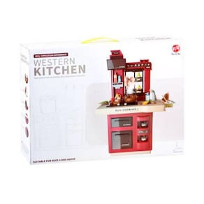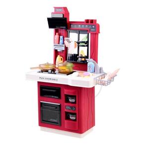 Brinquedo de cozinha de 65 cm com luzes, sons e acessórios Brinquedo de cozinha vermelho com spray para crianças e meninas Faça com que o jogo mude para utensílios de cozinha reais para cozinhar Torneira de água real Vários tipos de utensílios de cozinha O brinquedo é liso e sem rebarbas, material espelhado de simulação de alto risco, tutorial de instalação de brinquedos de cozinha
