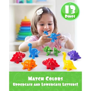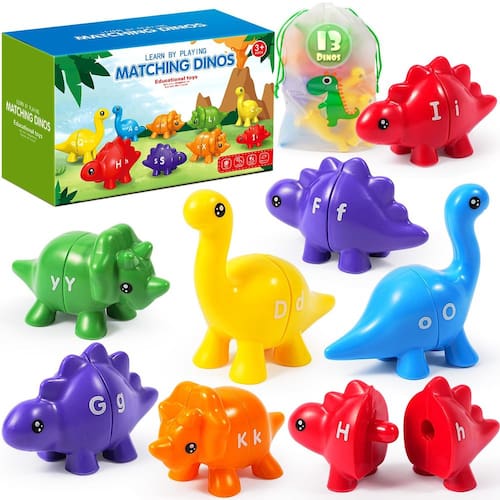 - Jogos divertidos de ortografia e combinação: 13 dinossauros para 26 letras! Existem as mesmas letras em cada lado das peças de dinossauro, o que o torna capaz de soletrar palavras simples. Lindos dinossauros do alfabeto são fáceis de montar, misturar, combinar e armazenar com uma bolsa de cordão portátil.