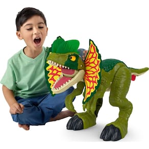 - Reviva momentos icônicos do filme Jurassic World com este brinquedo extra grande de dinossauro Dilophosaurus de mais de 16 polegadas de altura com luzes, sons e ações legais -
