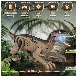 Viva uma experiência de aventura com o Toque de um Botão! Este dinossauro de controle remoto possui um modo de demonstração automático. Basta pressionar um botão para vê-lo andar e começar a rugir! Com três efeitos sonoros realistas, ele traz o mundo pré-histórico à vida, criando uma experiência de jogo imersiva que desperta a curiosidade e a imaginação das crianças. Com uma aparência realista e movimento autêntico, este dinossauro velociraptor é projetado com texturas detalhadas, olhos 3D e uma postura de caminhada natural, trazendo os dinossauros da era jurássica de volta à vida. O movimento suave e os detalhes vívidos imergem as crianças em um mundo de aventura pré-histórica. Divertido e educativo, esta é uma experiência prática e envolvente para as crianças. Elas podem montar o dinossauro sozinhas, incluindo a fixação do rabo e garras dianteiras, promovendo o desenvolvimento da coordenação mão-olho, pensamento lógico e consciência espacial. Com uma bateria recarregável de alta capacidade, este brinquedo de dinossauro robô está pronto para longas horas de diversão sem trocas frequentes de bateria. Aproveite aventuras mais longas e um uso conveniente em ambientes internos ou externos, sempre pronto para a diversão. O controle remoto utiliza 2 pilhas AA (não incluídas), permitindo um controle suave e responsivo para uma emocionante brincadeira de dinossauros. Ideal como presente para crianças que adoram dinossauros, este brinquedo possui tecnologia de controle remoto 2.4GHz, permitindo que vários jogadores controlem o dinossauro ao mesmo tempo, ideal para interação entre pais e filhos. Uma maravilhosa dádiva que inspira a criatividade e fortalece os laços familiares.
