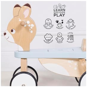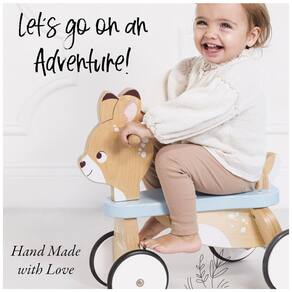 DESIGN ÚNICO PINTADO À MÃO Este adorável andador em formato de cervo da exclusiva Coleção Petilou combina estrutura robusta de madeira com um bolso de armazenamento para que as crianças possam levar seus pequenos tesouros durante as aventuras.