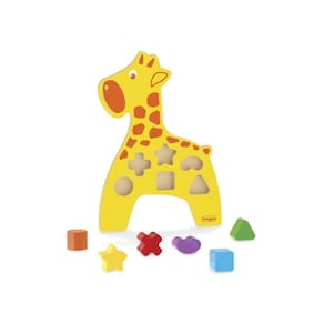 Cada animal apresenta 6 rebaixos com formas geométricas simples, onde a criança deve encaixar as peças plásticas coloridas que acompanham o produto.