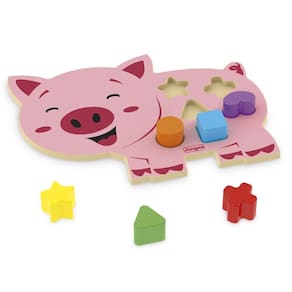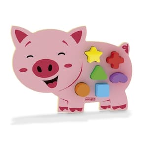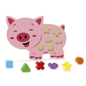 Cada animal apresenta 6 rebaixos com formas geométricas simples, onde a criança deve encaixar as peças plásticas coloridas que acompanham o produto.