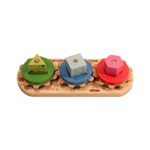 Contém 1 prancha em M.D.F medindo 29,5x11x7,5cm com 12 peças coloridas com tinta atóxica e em diferentes formatos.