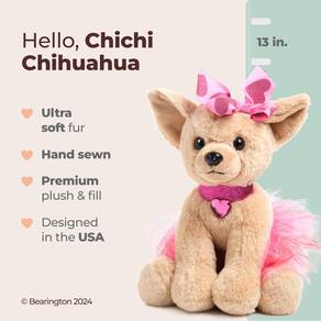 Você vai adorar os detalhes finos que Bearington Collection usa para dar vida ao Chichi Chihuahua, o cachorrinho. Feito à mão usando a pelúcia mais luxuosa e macia, este cachorrinho é perfeito para todos, desde o colecionador até uma criança especial em sua vida. Macio e articulado, o chihuahua Chichi será o companheiro perfeito. Fundada em 1997, a Bearington tem orgulho de receber prêmios de design mais distintos do que qualquer outra empresa de ursinhos de pelúcia. Ao longo dos anos, a Bearington recebeu mais de 100 prêmios e indicações de design da indústria, que incluem: 1 prêmio colecionável canadense do ano, 2 nomeações de pelúcia do ano NALED, 2 prêmios CIB Collector's Choice e vários prêmios TOBY Industry Choice, TOBY Public Choice Awards e indicações Golden Teddy. 33 cm a partir de 3 anos. - Chihuahua Chichi adorável de 33 cm, vestido com um tutu rosa e laço de cetim, com pingente brilhante em forma de coração - Premiado. Bearington Collection - Realisticamente detalhado usando material da mais alta qualidade - Puff pesado para capacidade de poses, ultra pelúcia e abraçável - Superfície lavável