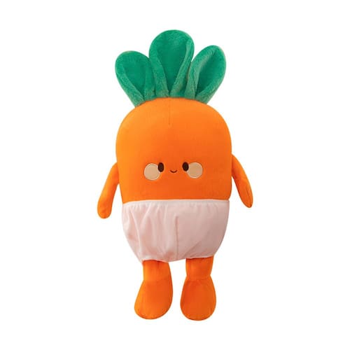 Material: pelúcia Tamanho: 40 cm Peso: 200 g Design fofo de cenoura — apresenta uma cenoura em estilo cartoon com um rosto sorridente, parte superior de folhas verdes macias e braços e pernas divertidos para uma aparência animada. Tecido macio e confortável — feito com material de pelúcia de alta qualidade e enchimento macio, seguro para crianças e macio ao toque. Tamanho compacto de 40 cm — Leve e fácil de segurar, perfeito para as crianças abraçarem, brincarem ou usarem como almofada decorativa. Boneca de pelúcia multiuso — funciona como uma divertida almofada de sofá, uma almofada de escritório aconchegante ou uma charmosa pelúcia com tema vegetal para decoração de casa. Durável e fácil de manter — a costura resistente mantém a boneca de pelúcia em forma mesmo após o uso repetido, e a superfície é fácil de lavar à mão.