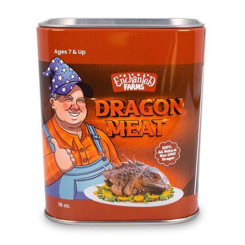 - Sabores míticos em lata: dê o presente de risos com esta lata hilária de carne de dragão de pelúcia que é toda fatiada e preparada para a mesa de jantar. Parte da série exclusiva de brinquedos de pelúcia Enchanted Farms.