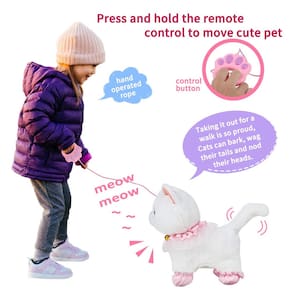 Este gato e gatinho brancos realistas não só podem andar, acenar com a cabeça, abanar o rabo e latir, mas também podem ser os companheiros perfeitos para uma criança e são muito fofos e fofos. Com um casaco branco macio e um rosto fofo , pode ser um companheiro próximo ou melhor amigo de uma criança. Com a maior mobilidade de um cão de brinquedo, as brincadeiras podem ocorrer em qualquer superfície. Esses animais de estimação não têm chance de alergias ou irritações e são 100% seguros Sobre nossos produtos Materiais de alta qualidade: tecido macio de alta qualidade e plástico ABS, seguro e inodoro Tamanho: 8,6 x 8,4 x 3,7 polegadas Peso: 1,1 libras Idade aplicável: 3 anos ou mais Baterias: 3* 1,5 VAA Função: acariciar suavemente emitirá um som e, ao caminhar, também abanará o rabinho para se comunicarem. Melhor presente: presente perfeito para meninos, amantes de meninas, crianças ou cachorros de todas as idades. - Design exclusivo para desmontar roupas - Nosso brinquedo eletrônico para passear para gatos tem um design exclusivo de roupas removíveis, não é fácil de deformar e não desbota. Crianças pequenas podem ser lavadas diretamente após o contato com a água e mantê-las limpas. - Realista com cordas de controle remoto - O gato de brinquedo caminha, late, abana o rabo e acena com a cabeça como um gato de verdade. Ao carregar as baterias e ligá-las, pressione o botão na alça da coleira e ela andará e é divertido vê-la ganhar vida. - Brinquedos interativos de voz e toque - O brinquedo eletrônico para animais de estimação também pode latir, abanar a cauda e acenar com a cabeça em resposta quando você toca suavemente a cabeça com a mão ou fala com ela. O gato pode fazer truques e andar sobre tapetes, madeiras duras. O bebê vai adorar muito. - Altamente seguros e duráveis - Os brinquedos para gatos usam materiais seguros e ecológicos, peles realistas de alta qualidade, confortáveis e macias, lisas e insípidas, não tóxicas e inofensivas. O gato interativo se sentirá como um verdadeiro animal de estimação, o bebê pode brincar com confiança. - O conjunto educacional perfeito - O brinquedo vem em uma linda caixa de presente grande com um gato e todos os acessórios, incluindo uma coleira remota, espelho, pente, frasco de perfume, secador de cabelo, tigela para gatos, mamadeira e capas de quatro pés. Requer 3 pilhas AA (não incluídas). Pode melhorar a audição, a atenção e a percepção das coisas do bebê.