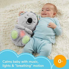 O bebê pode se contentar com uma sessão aconchegante de abraços com o coala aconchego de Fisher-Price. Este brinquedo de pelúcia musical aconchegante tem uma barriga macia e leve que se move para cima e para baixo em um movimento rítmico suave, assim como está respirando. Personalize o reconfortante com temporizadores personalizáveis, sons de música ou natureza e luzes multicoloridas. Este bebê de pelúcia soother é lavável por máquina e apresenta uma variedade de texturas para mãos pequenas para explorar.