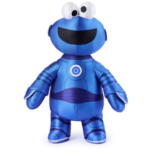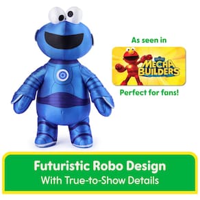 - MECHA BUILDER COOKIE MONSTER PLUSH: Esta pelúcia de 33 cm apresenta o Cookie Monster em sua armadura azul macia e brilhante, como visto na série animada Sesame Street Mecha Builders. O biscoito Mecha tem um corpo espremível e pés resistentes que o ajudam a ficar em pé