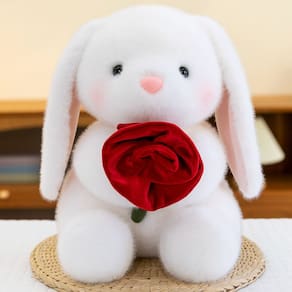 Material: pelúcia Tamanho: 25 cm Charming Bunny with Rose — Este brinquedo de pelúcia apresenta uma adorável boneca de coelho branca com bochechas coradas, orelhas longas e caídas e uma delicada rosa vermelha, adicionando um toque romântico e fofo a qualquer espaço. Tecido macio e premium — Feito com material de pelúcia de alta qualidade, este boneco de coelhinho de pelúcia não agride a pele, é suave ao toque e é perfeito para abraçar ou decorar. Tamanho compacto e decorativo — Com 25 cm, esta boneca de pelúcia macia é leve e ideal para brincadeiras infantis, decoração de quarto ou como uma linda companheira em uma mesa ou prateleira. Estilo de desenho animado versátil — Um lindo brinquedo de pelúcia de coelho de pelúcia adequado para crianças, colecionadores ou como decoração sazonal para o Dia dos Namorados, ambientes românticos ou eventos temáticos. Fácil de limpar e durável — Projetada para a diversão diária, a boneca coelhinha de pelúcia pode ser limpa suavemente para manter sua suavidade e aparência encantadora.