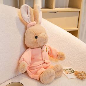 Material: pelúcia Tamanho: 48 cm. Design elegante de coelhinho — Este brinquedo de pelúcia apresenta uma boneca de coelho macia vestida com uma roupa cor de pêssego com bordado de cenoura, criando uma aparência fofa e moderna. Material de pelúcia de alta qualidade — Feito de tecido de pelúcia premium, este boneco de pelúcia é suave para a pele, suave ao toque e perfeito para abraçar ou confortar crianças. Tamanho ideal para abraçar — Com 48 cm, esta boneca de pelúcia macia é leve, mas grande o suficiente para servir como uma companheira de dormir aconchegante ou uma adorável peça de decoração de quarto. Versatilidade em estilo de desenho animado — Um charmoso brinquedo de pelúcia de pelúcia adequado para brincadeiras, decoração de berçário ou como uma presença reconfortante para crianças na hora de dormir ou viajar. Durável e fácil de limpar — Projetada para uma suavidade duradoura e cores vibrantes, esta boneca de coelho de pelúcia pode ser limpa com cuidado para mantê-la fresca e fofa.