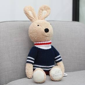 Material: pelúcia Tamanho: 45 cm Design clássico de suéter tricotado — Este brinquedo de pelúcia apresenta uma charmosa boneca vestida com um suéter tricotado azul marinho com listras vermelhas e brancas, adicionando uma aparência aconchegante e elegante. Textura macia e suave — Feita de material de pelúcia premium com uma roupa de malha aconchegante, esta boneca de coelho de pelúcia não agride a pele e é perfeita para abraçar ou confortar crianças. Tamanho médio ideal — Com 45 cm, esta boneca de pelúcia macia é leve, mas grande o suficiente para servir como companheira na hora de dormir ou como uma linda peça decorativa para quartos e creches. Versatilidade em estilo de desenho animado — Um delicioso brinquedo de pelúcia de pelúcia adequado para brincadeiras infantis, decoração de casa ou como companheiro relaxante durante cochilos e viagens. Durável e fácil de limpar — Projetada para uma suavidade duradoura e cores vibrantes, a boneca coelhinha de pelúcia pode ser limpa com cuidado para manter sua aparência adorável.
